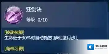 简评:也就是说在血量低于30%是会获得一个不会消失的醉仙望月步效果,在刷野怪的时候其实并不会掉很多血,但是在神魔战场、仙斗会此类活动中增益效果会比较明显,建议点一级就可以了。
