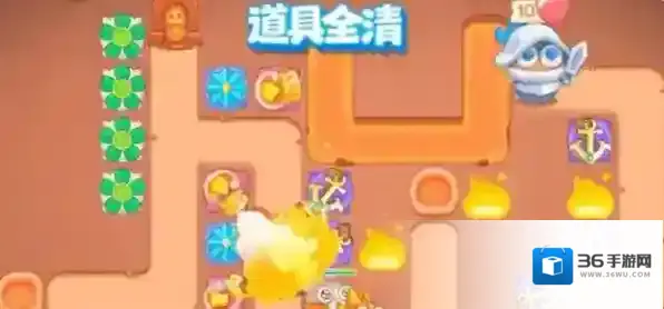 7.在下方接着补上一个喷火瓶,此时我们的输出已经完全足够,并且也达成了道具全清的效果,后面只需要不断的增加升级新炮台就可以顺利通关。