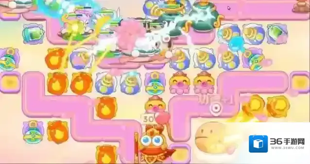 1、火炮打钱袋,在建立一级章鱼防守,三个粉兔来了打粉兔。