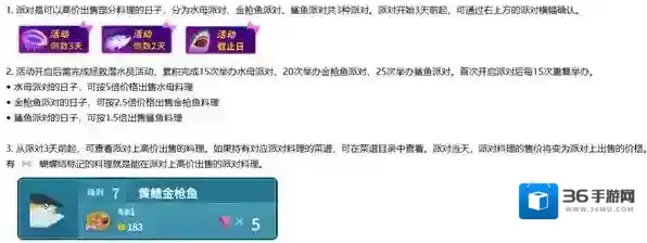活动内容:参与拯救潜水员活动,完成蓝洞探索后,将自动前往班乔寿司金海滩店,使用蓝洞探索获得的鱼肉作为料理在班乔寿司营业中出售,可获得金币