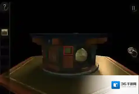这个普通钥匙是去开双重机关的,解锁后又是个“试试”保险锁。这里就直接报答案啦,左5右4,然后左到底右到底。出现了个奇怪的装置,看起来有点像放大镜还是什么的。镜筒下方有个小印章一样的东西可以捡起来,算是个用来嵌入的方形扣子吧。