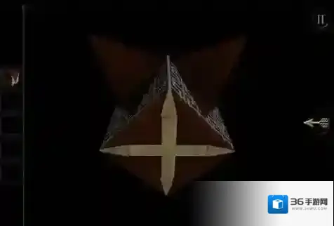 仔细看看,这个方形扣子的图案很熟悉,原来跟在放大镜图形上方那里的图案是一样的。放大镜机关要用目镜才能看到。同心圆外圈是可以移动的,将中心圆左边的那块先推出来,放到右下角去,再把右边的那块推出来。