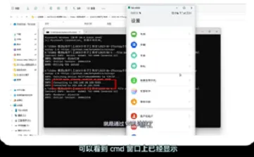 2、在 WIFI 无线连接 后,cmd 窗口会显示出手机的 IP和端口号