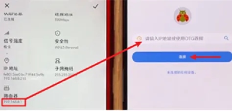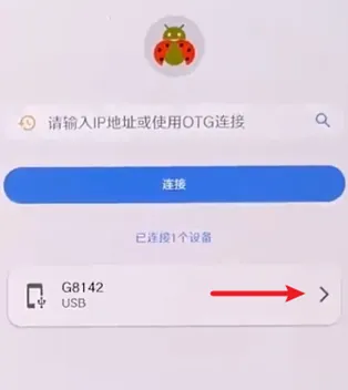 3、在主控机的甲壳虫 ADB 助手上,填写被控机的 IP 地址:端口号,点击连接