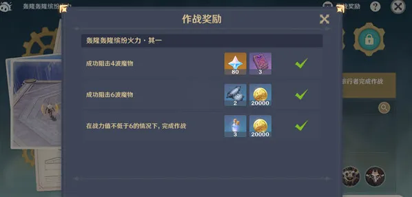 每关成功击败4波怪物可获得80原石 拿原石的门槛依旧很低 一轮挑战共12波 最后一档奖励略有难度 不过手法比较好也可以一次性满血通关 。
