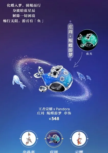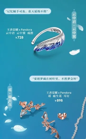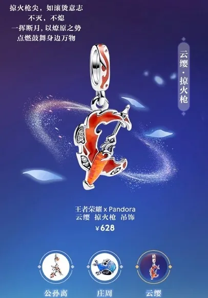 王者荣耀与潘多拉联动首饰目前已经官宣,分别是大乔、小乔、庄周、阿离、云缨、云中君、瑶,价格从几百到2000不等。