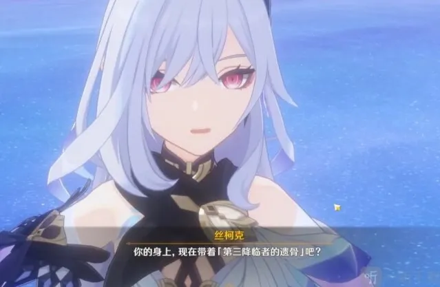 在咱们玩家和水龙王联手解决吞星鲸后,丝柯克现身告知了水龙王更多的情报。比如愚人众一直在努力收集的“神之心”,竟然是“第三降临者的遗骨”。原来“第三降临者”的能力是对元素有着极强的兼容性,以至于可以增幅元素力。而咱们主角作为“第四降临者”也有着类似的特质,那就是在不动用神之眼的情况下自由使用和转换元素力。可见,这是在为后续剧情做伏笔。