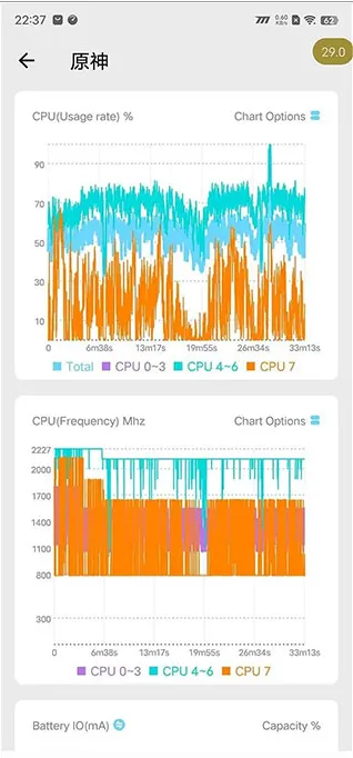 5、如在《原神》游戏中测试,游戏操作界面中点击红色悬浮按钮开始录制帧率。