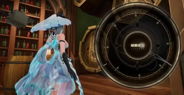 在靠近酒桶后,玩家需要通过不断地按动酒桶按键,来破解酒桶的解谜,该解谜难度比较低,玩家长时间不放松按键,即可快速达成。