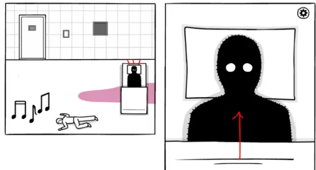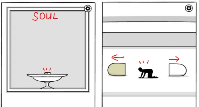 走开一下,再回来,再输入密码[SOUL]。出现药丸,点击放大,左右拉开药丸,一直点击,房间走出小黑。
