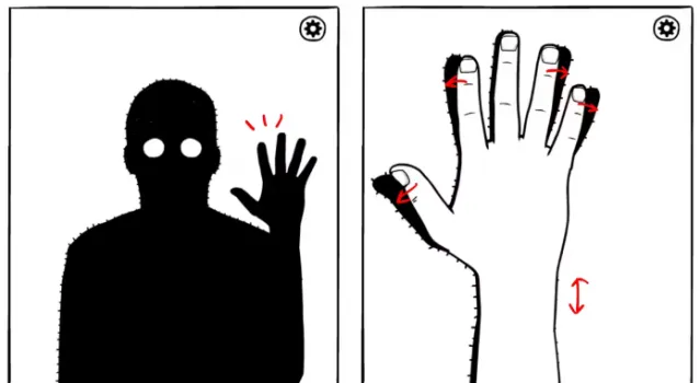 小黑举起右手,点击右手,移动Hill的手和他重合,左右移动手指微调。Hill倒地。