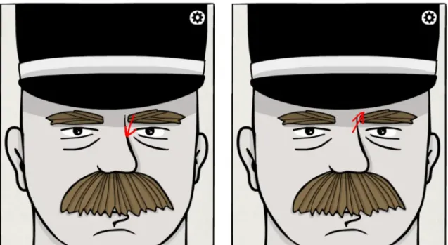 点击警官,把眉毛向下移,点击灯,把眉毛向上移。