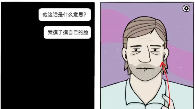 画面左移,点击鹿头和他对话,把手上移到脸上后松开。