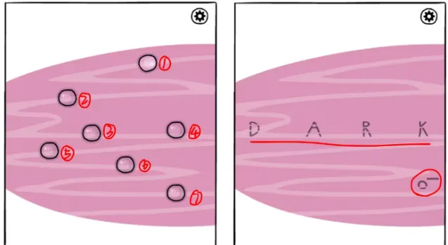 走到床前的液体这里,根据白色线的走向从上到下点击泡泡,然后出现新的单词和符号。