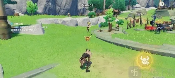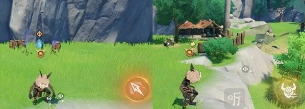 「点击按钮」移动到睡觉的丘丘人左边站着的丘丘人头上