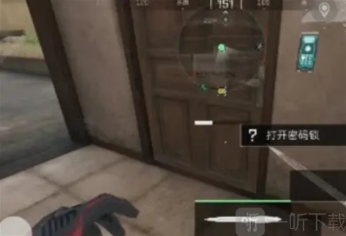 从入口下坡后直行即可看到密码门。