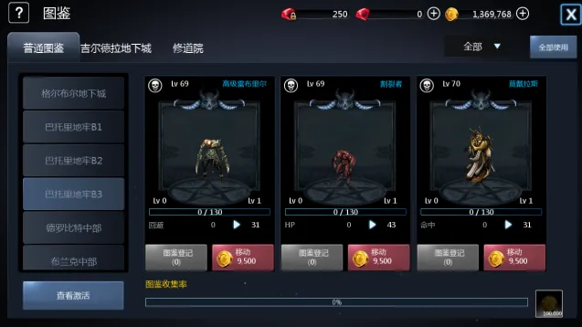 ② 核心操作:击杀怪物概率掉落图鉴硬币(可交易),消耗硬币升级图鉴,激活永久属性;