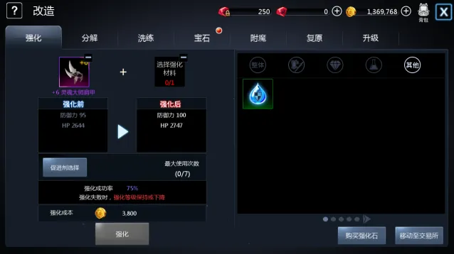 – 附魔:用附魔石附魔,属性随机,前期无需追求高阶;