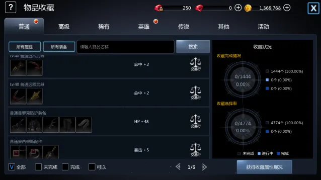 ③ 辅助功能:可筛选套装等级,查看已激活属性,规划收藏方向;