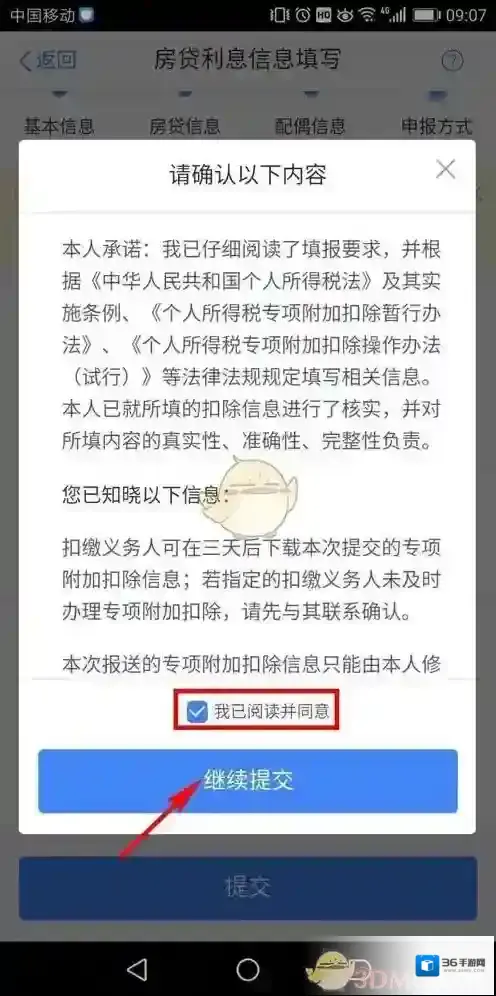 10、完成上述所有步骤内容后,便能看到下图的内容,勾选协议,然后点击继续提交。