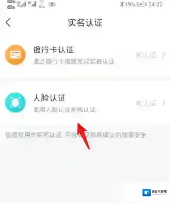 5、进入实名认证界面,选择银行卡认证或人脸认证的选项,即可完成实名认证。