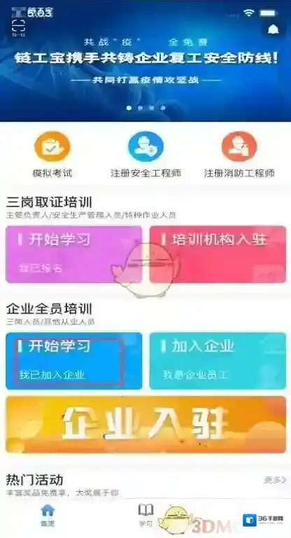 5、成功加入企业后,员工点击开始学习,即可开始复工复产前的线上培训。