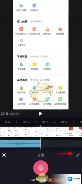 6、这样就成功给视频添加录音了,点击录音可以再进行修改。