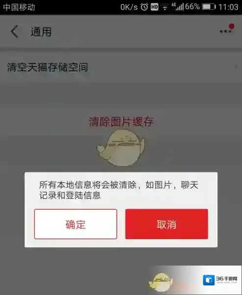 6、如果大家想彻底一点的话,可以点击“清空天猫存储空间”,这会清除所有的本地信息。