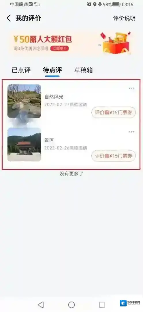 第五步:点击待点评,可以看到待评论的内容,根据需要查看,如下图所示。