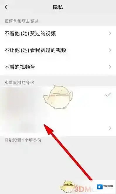 4、在隐私界面,点击想要修改的身份;