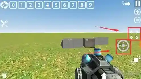 移动:屏幕中心十字标对准物体后,点击右侧圆圈按钮,打开移动控制界面。下图把物品移动到箭头位置的话,手指向右滑动屏幕,物品会跟随屏幕视线也向右移动。