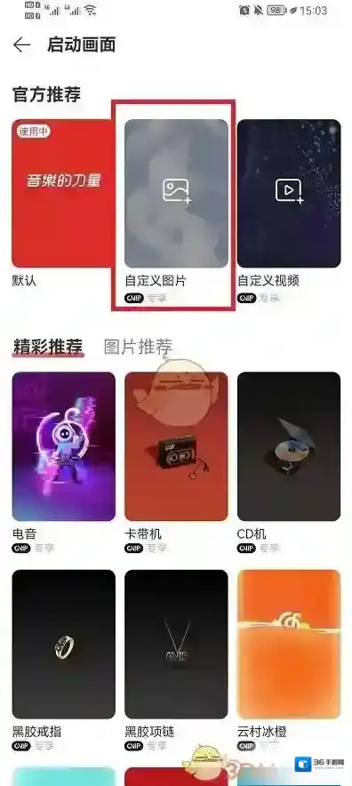 4、在此界面我们需要点击自定义图片,就可以进入到手机相册去选择图片,就可以完成设置,但是需要黑胶会员。