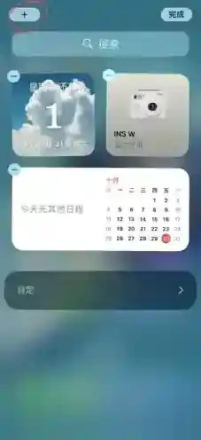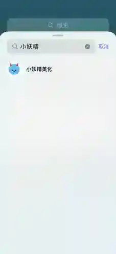 4、把小妖精美化添加到你的组件里并保存即可将其显示在桌面上了。回到桌面后,长按桌面空白处,点击左上角出现的“+”号键,在搜索框输入“小妖精美化”进行搜索。