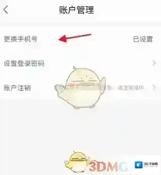5、进入账户管理,找到下方的更换手机号,点击手机号进入