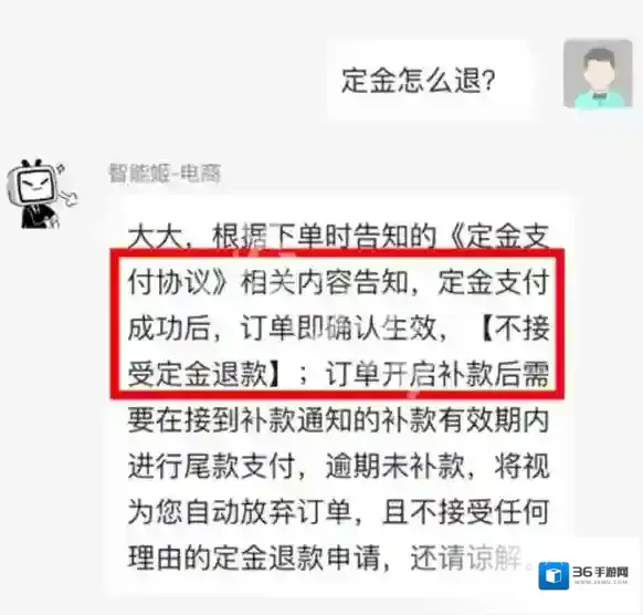 5、最后得知定金支付后,订单即确认生效,不接受定金退款。