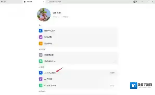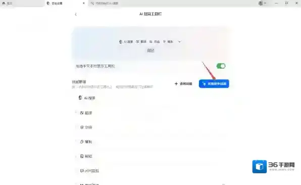 4、接着,找到AI划词工具栏功能,点击它。