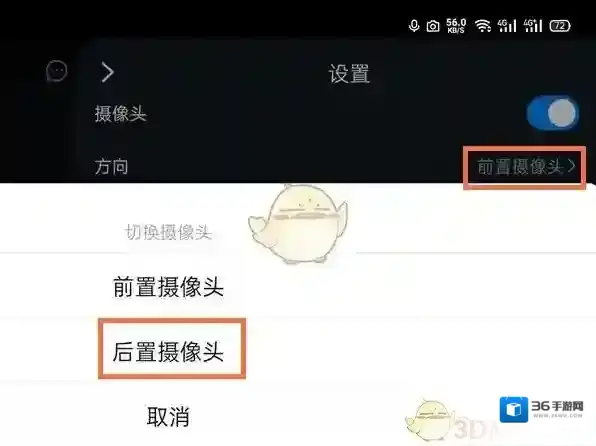 4、点击摄像头后,选择前置或者后置摄像头即可。