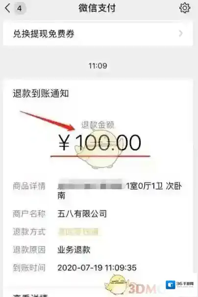 6、安居客100元退款押金,将退回到之前支付的渠道,比如小编之前用零钱通支付的,钱自动退款到零钱通,如下图所示: