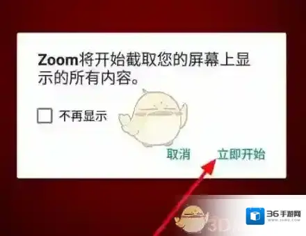 5、之后“Zoom将开始截取您的屏幕上显示的所有内容”,点击“立即开始”,可以勾选“不再提示”,以后就不会在出现这个提示;
