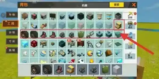 首先我们在背包里面找到机器车间,放在地面即可看到一个类似于武器微缩模型的框架。
