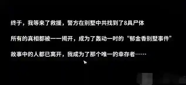 终于,我等来了救援,警方在别墅中共找到了8具尸体
