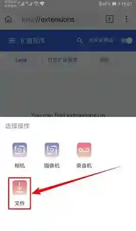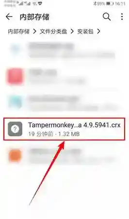 9、然后找到手机中crx格式的Tampermonkey扩展插件文件,点击他。