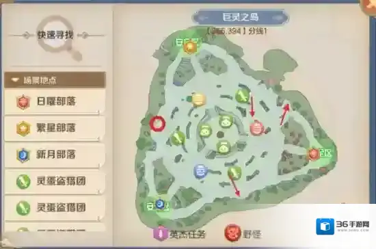 巨灵岛,找到食人花圆圈标识处,接到任务需要找到,曼玲,慧玲,美玲箭头处附近就是了。