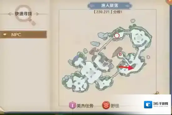 渔人聚落,去龙骨地方找族长(箭头),接任务后去找三生花(圆圈)。还有一个隐藏任务,就是熊猫武士的隐藏任务,只要兑换了熊猫的皮肤激活就可以在方块处领取这个隐藏任务,给的奖励一般。这个任务无所谓,因为皮肤碎片获得不容易,都是优先换冰甲熊,然后换狐狸皮肤的,熊猫皮肤看个人爱好吧,