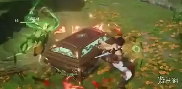 9、宝箱八:利用石块和浮台爬上山后,需要击败宝箱处的怪物才能开启。