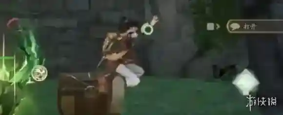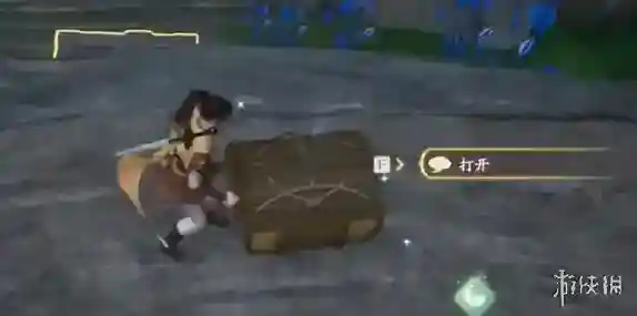 2、宝箱一:然后一直前进,就会在左侧的石堆处获得第一个宝箱,注意:遇到宝箱时系统提前给出提示。