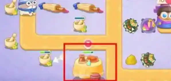 3.宝箱打出的道具是减速道具便便塔,随即锁定左侧的桌子,有钱了就将场上的炮塔升级。