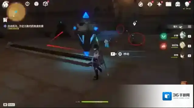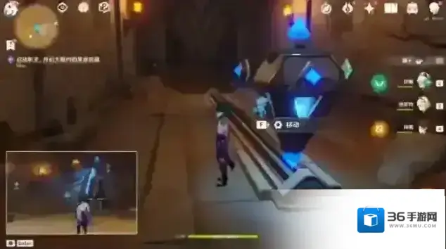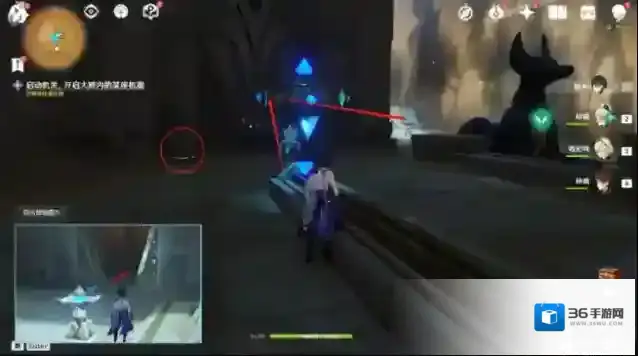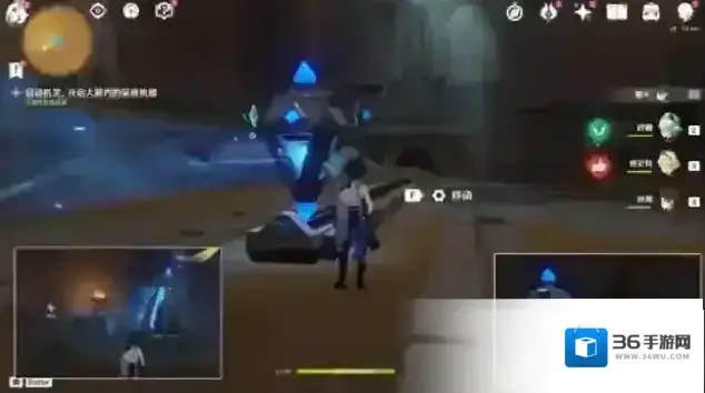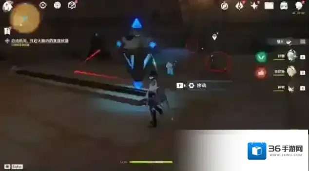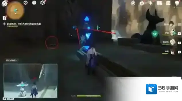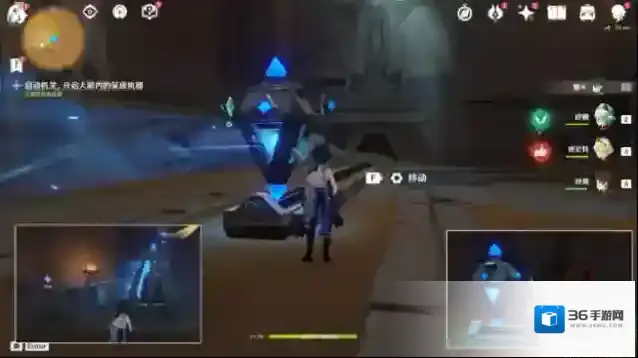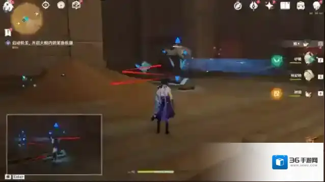 13.回到大厅,击打任务指示点最后一个机关,启动机关开启3号门。进门后,往左边走,移动机关,扫除沙堆,启动方块机关开门。