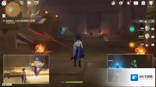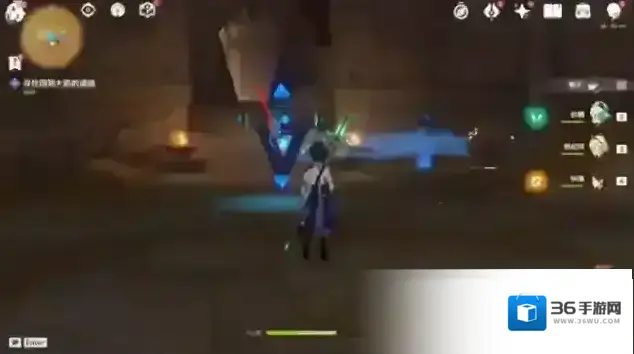 12.进来后,老规矩,移动机关再击打,扫除沙堆,启动机关开门,一直往下里面走到任务指引点(这里宝箱,神瞳啥的自己记得捡哈,因为与任务无关,所以我就跳过了哈~),上楼梯开门,往里走,就回到大厅了。