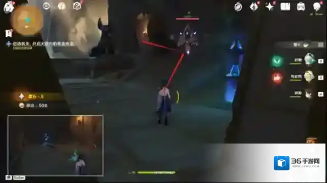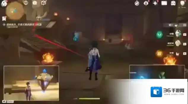 8.来到新点亮的机关,过剧情,老规矩:击打机关,调整光线方向至任务指引方向,使得沙堆消失,开启方块机关进入2号门。